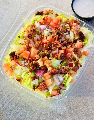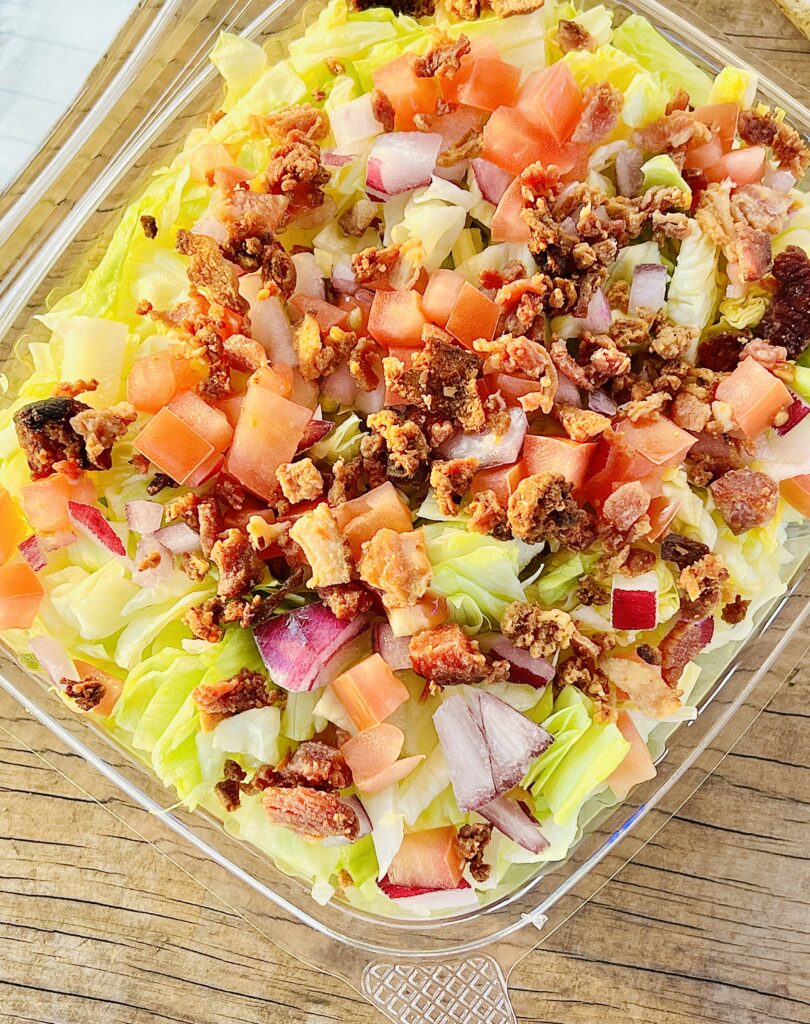 Iceberg Lettuce, Tomatoes, Onions, Bacon